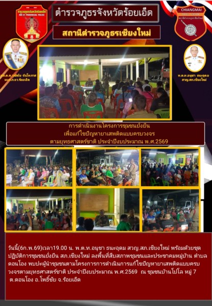 วันนี้(6ก.พ.69)เวลา19.00 น. พ.ต.ท.อนุชา ธนะอุดม สวญ.สภ.เชียงใหม่ พร้อมด้วยชุดปฏิบัติการชุมชนยั...